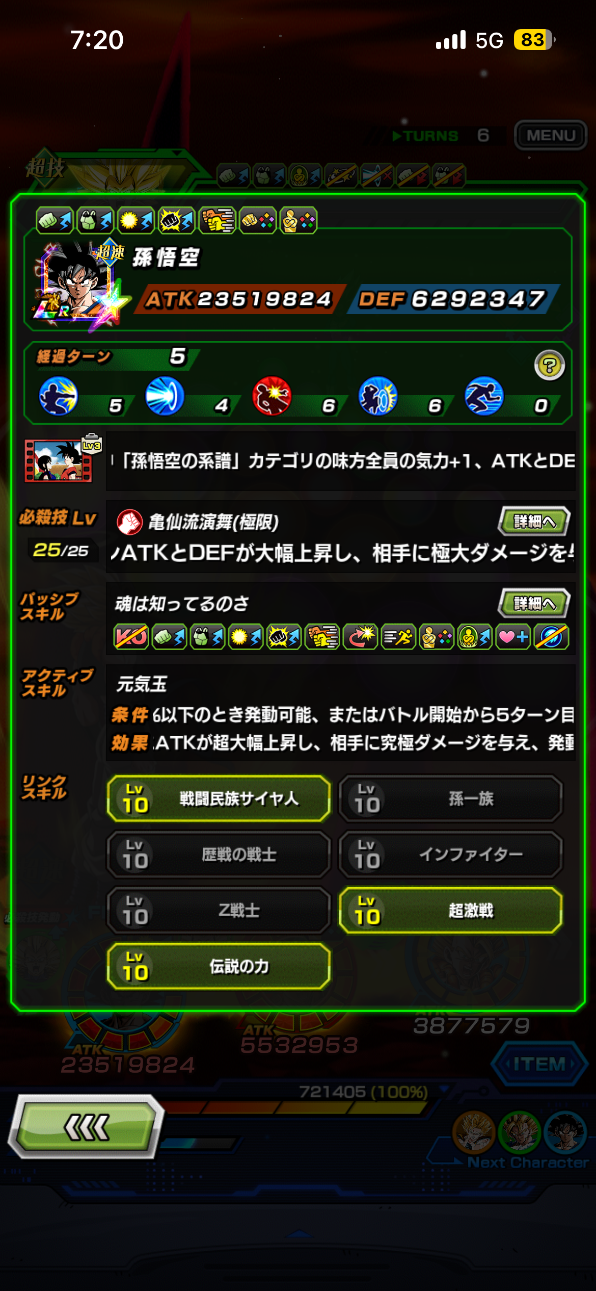 『K.O.耐久&回避の保険で死ににくい』と述べましたが、そもそもATK1,000万を大幅に超えるような火力を持つ敵でないとこの悟空を保険に追い込むことすら出来ないし、いかにこの悟空が死ににくい性能をしているかが良く分かるでしょう。