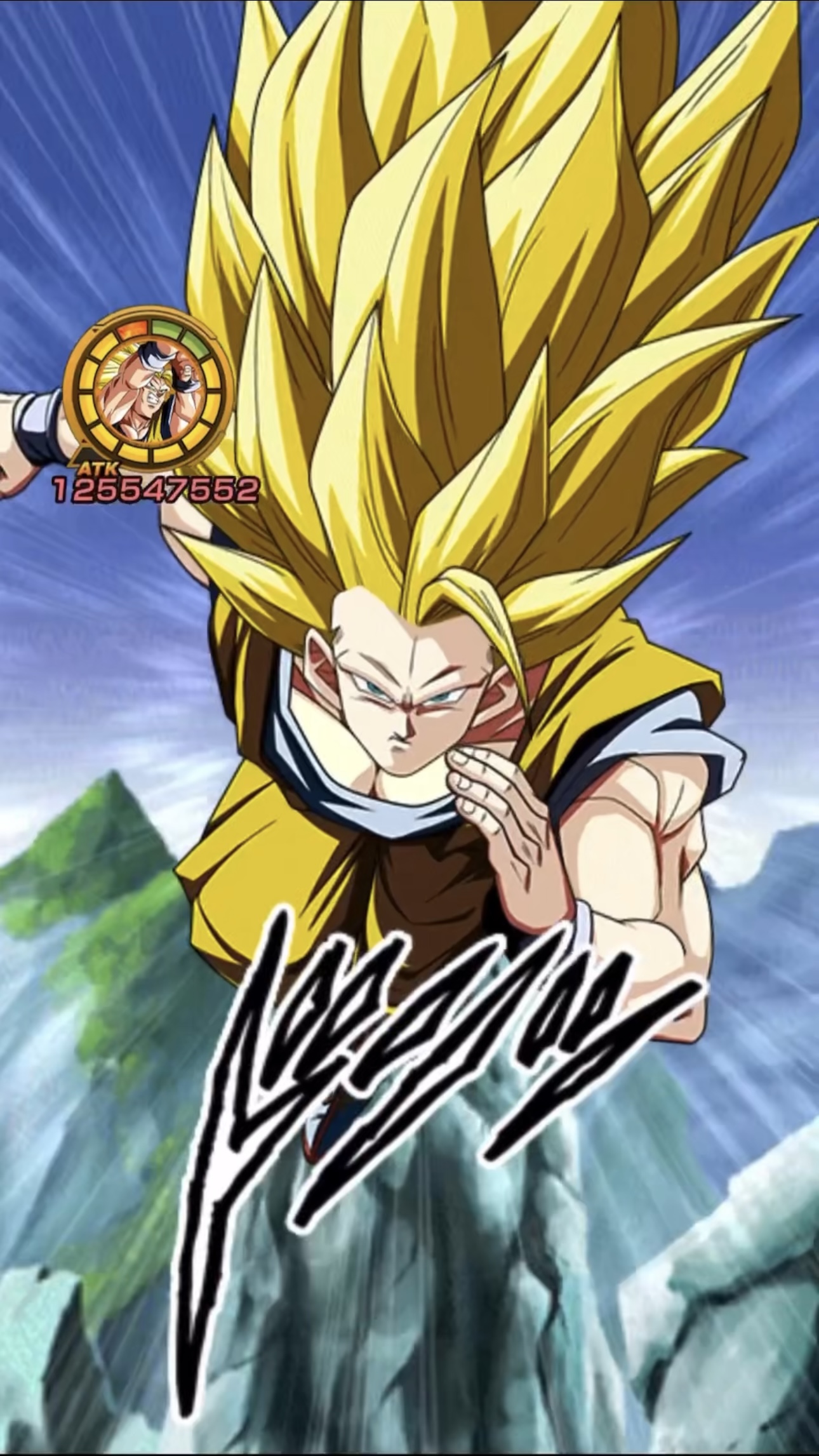 【宇宙の明日を守る闘い】超サイヤ人2孫悟空が『バトル開始から3ターン目以降、HP77%以下』で発動出来るアクティブスキルで変身した姿です。変身前の考察↑