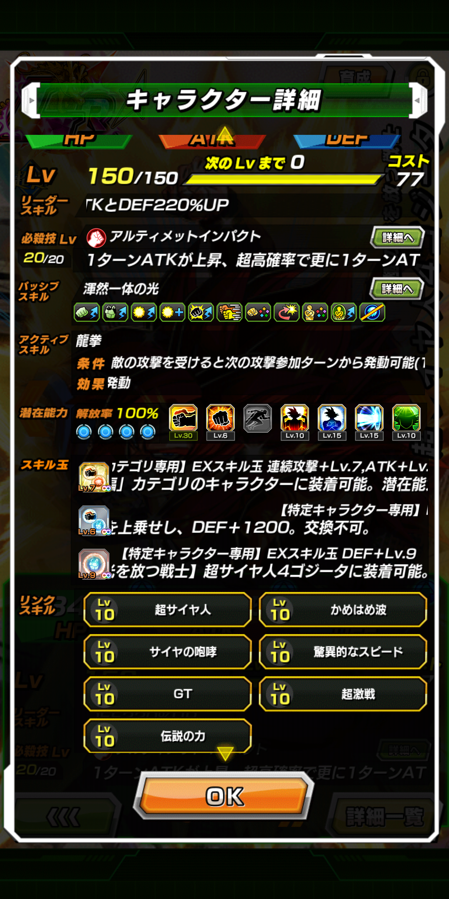 知UR超4ゴジータ超激戦 | 技UR超4ゴジータ超激戦 | 体LR超4ゴジータ超激戦 | – | – |