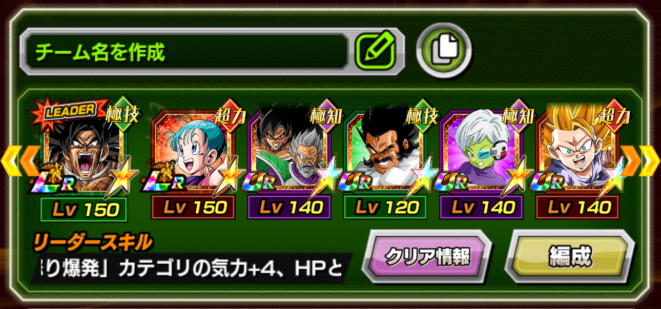 『極系キャラ』なんて括りで考えるなら今そちらは短期戦を戦う最適チームは既に完成していると言っても良いですが、このブロリーはそちらでカバーしきれない極系の弱点を別の観点・チームから補う立ち位置に収まったとも言えます。