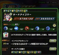 『99%軽減&73%回避&巨大化』のおかげで序盤のDEF実数値はほとんど関係無いみたいなものですが2度目の顔出し時には相当なものになっているし、火力も1番手に先制攻撃があればすぐさまATK実数値で合計1億くらいも狙えるレベルになって来ます。