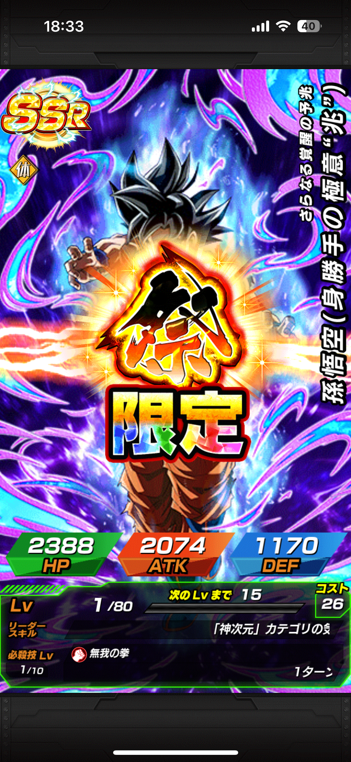 LR【限界を超えた神の力】孫悟空(身勝手の極意)に次ぐ2人目の同効果持ち、タイミングを見計らう必要があるあちらと違ってこちらは1度発動すれば永続だし、『回避で対処するしかないエグい火力の敵が登場したけど、ソイツが回避無効を持っている』なんてシチュエーションでは唯一無二の活躍も期待出来るでしょう。
