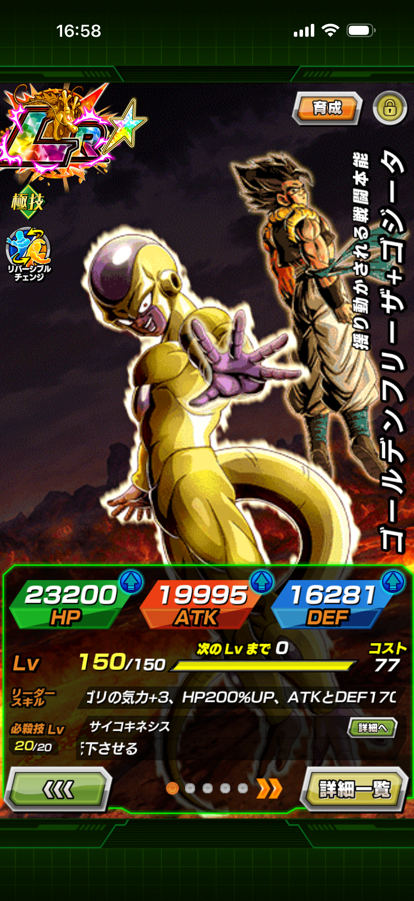 条件を満たすとLR【揺り動かされる戦闘本能】ゴジータ+ゴールデンフリーザにリバーシブルチェンジが可能になります。チェンジ後の考察は↑