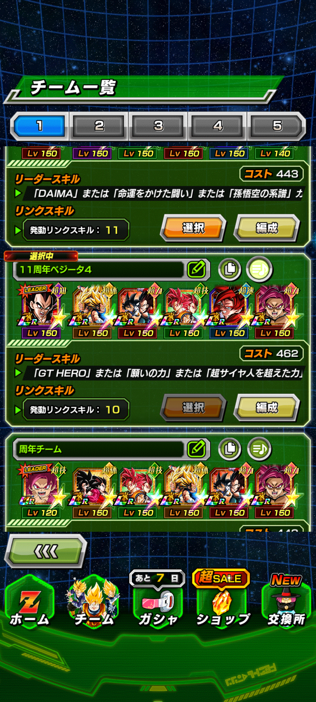 昔はサイヤ人変編成・非サイヤ人編成で分かれていた感じですが、現在は220%リーダーがまとめて率いれる状態になっています。