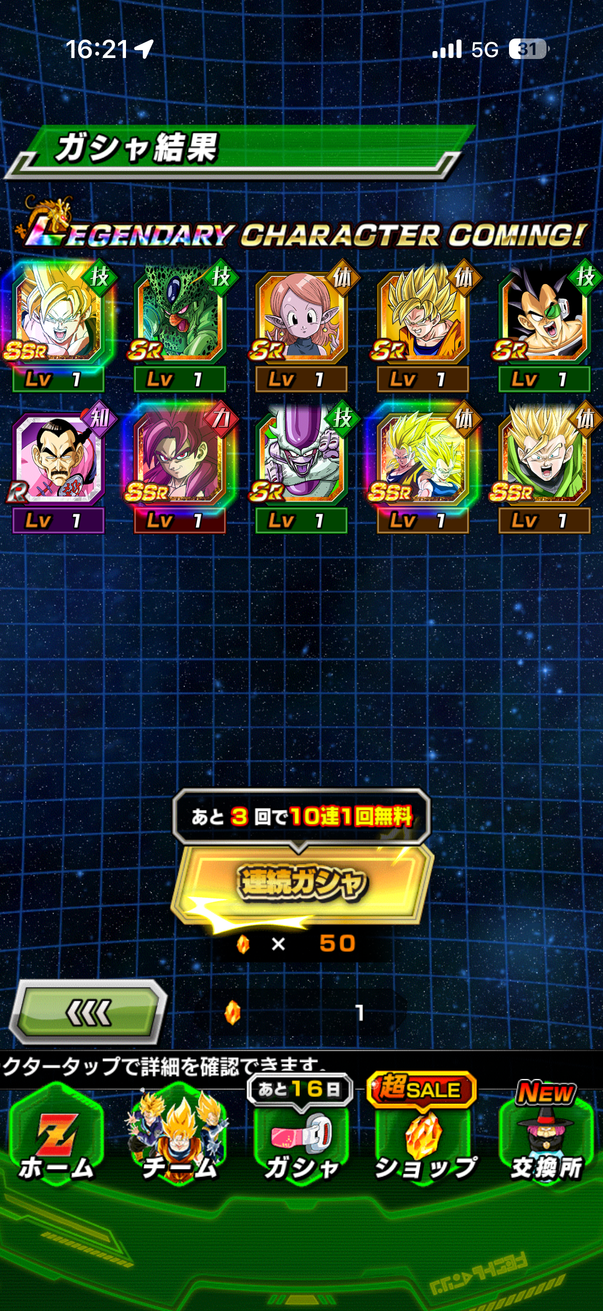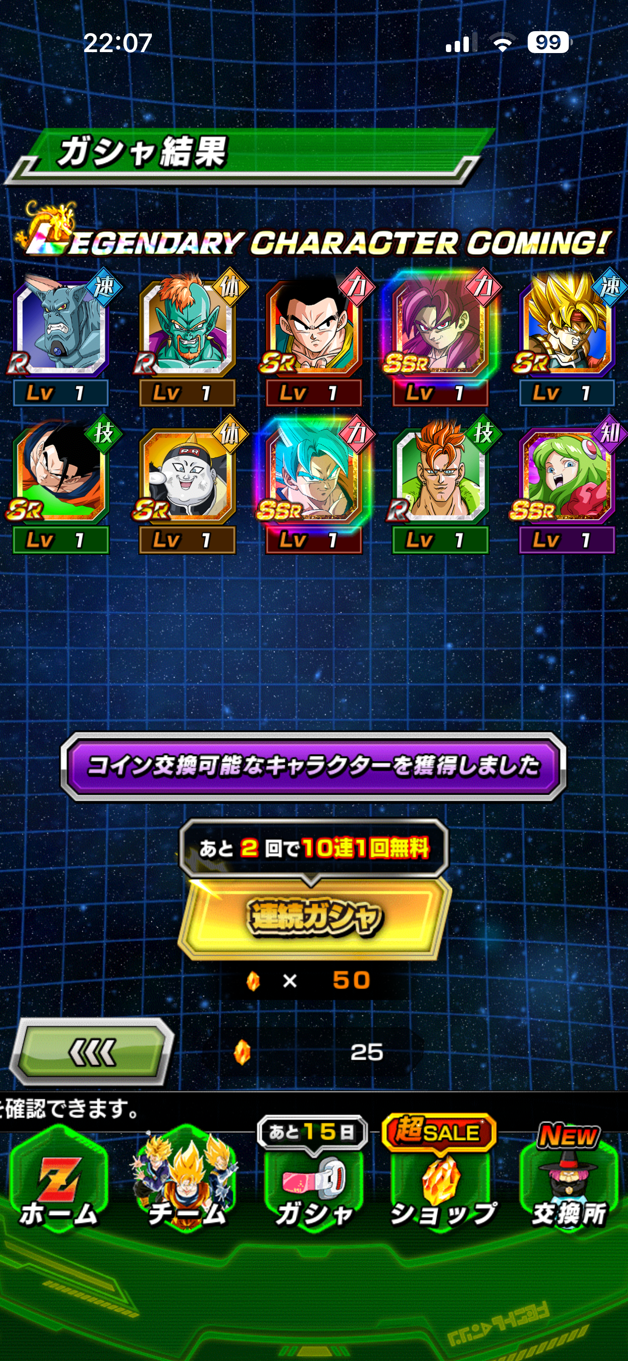 確かに何か今回は周年にしては渋い気がする。。結構大爆死して最後の最後で目玉の悟空出たけど一体だけだしな。。ベジータを回す余力はなし。