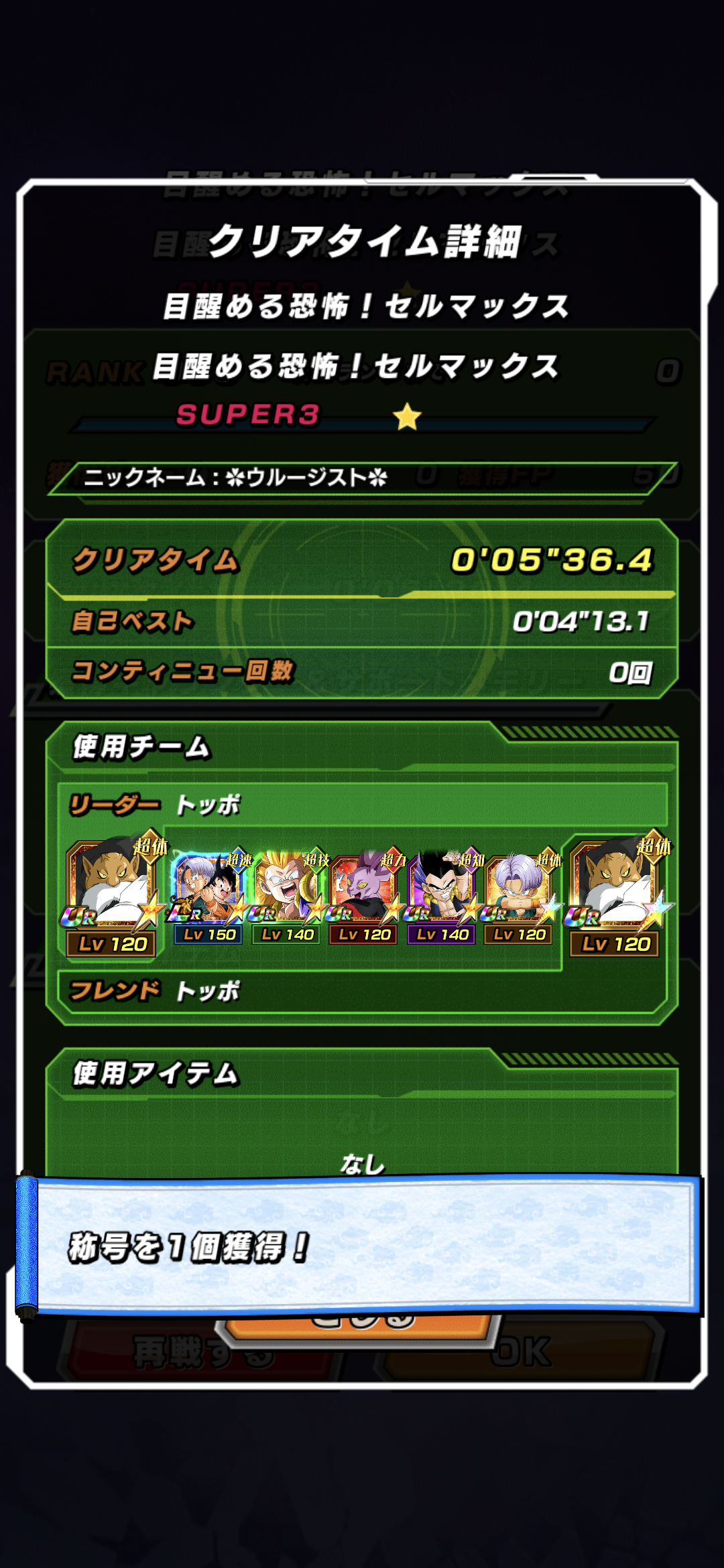 フレンドセルマックス作戦でいこうとしたけど、他のステージの時にセルマックスの虹のゲストが出るのに、ここ挑戦しようとすると二凸しか出てこなかった。