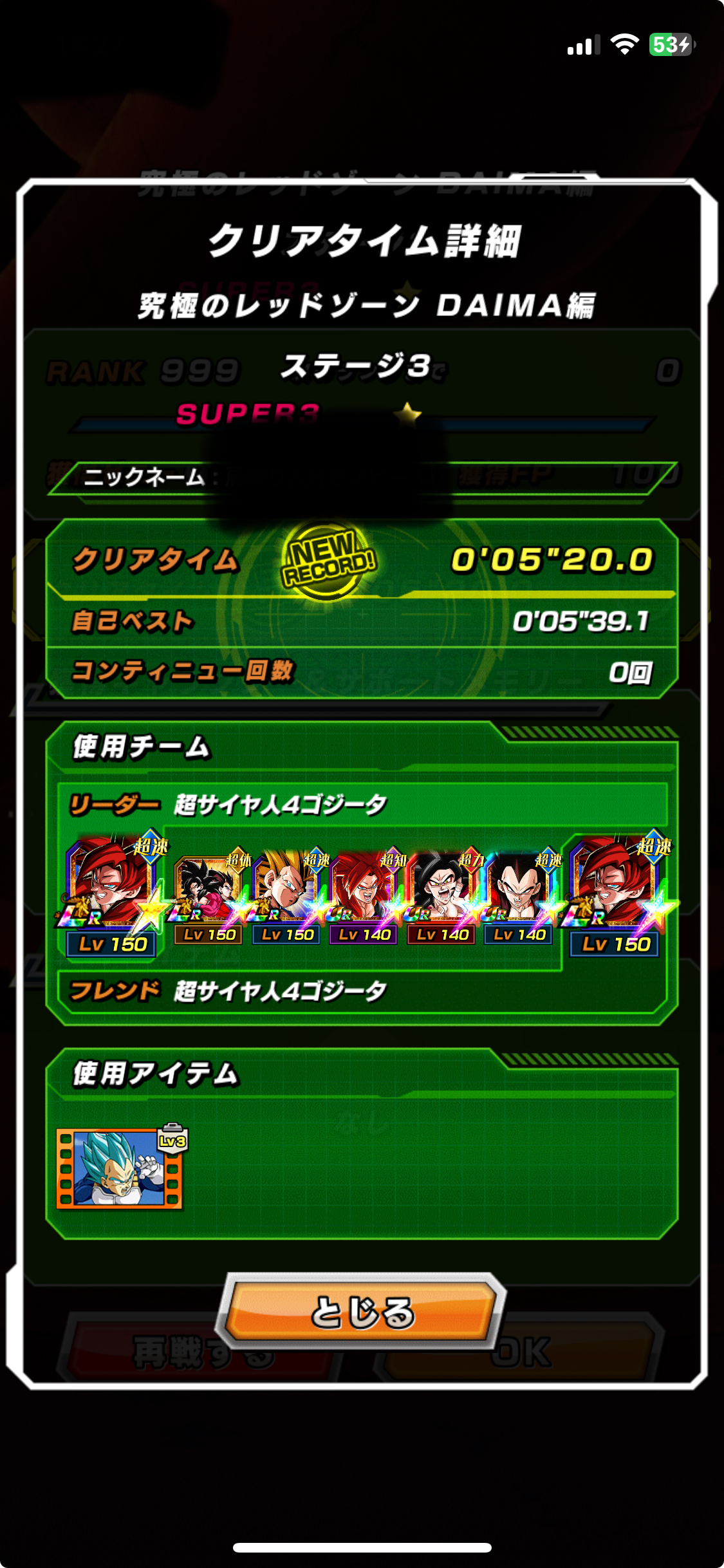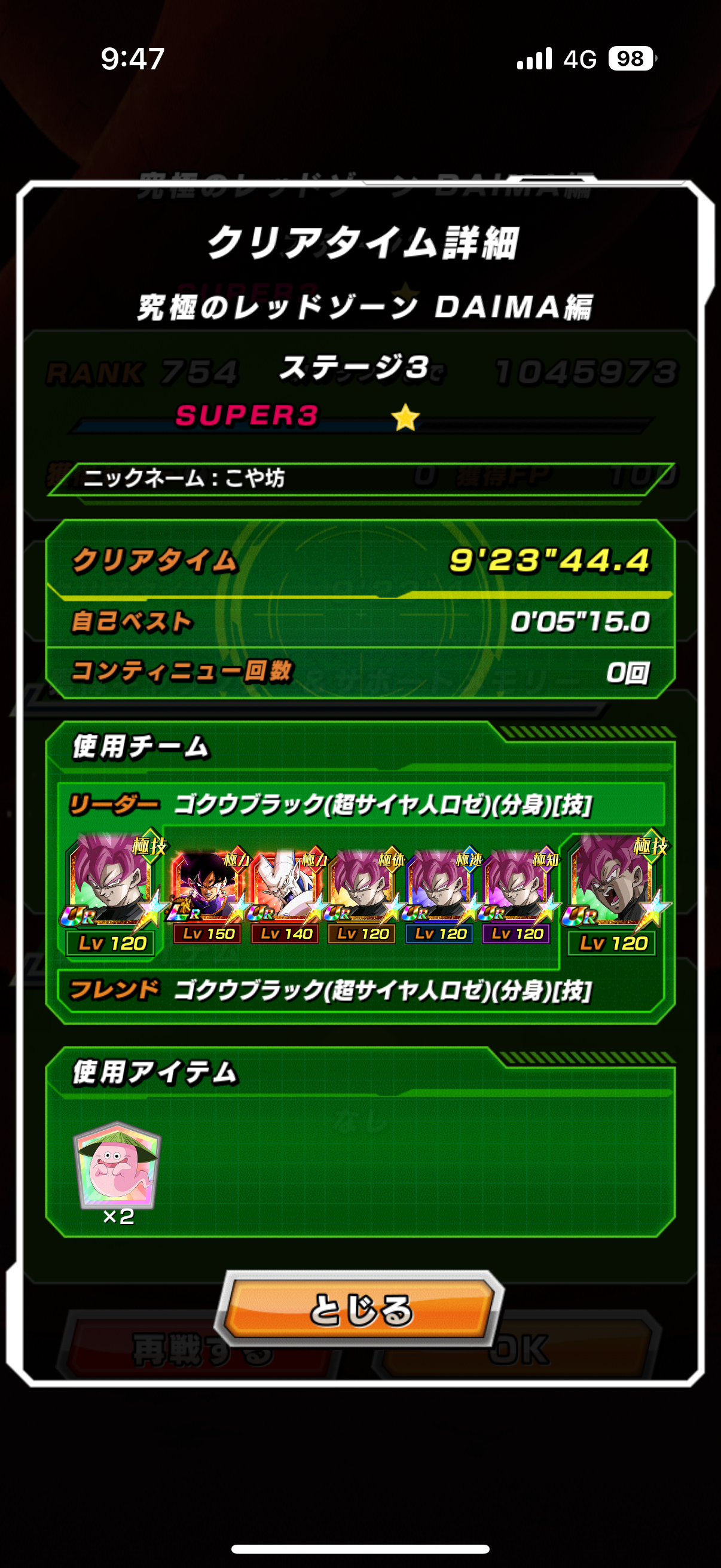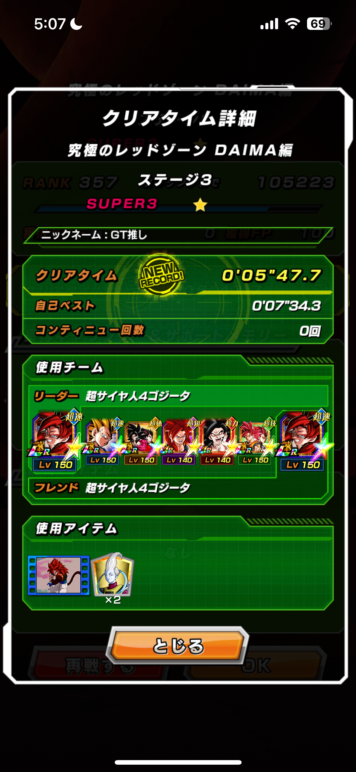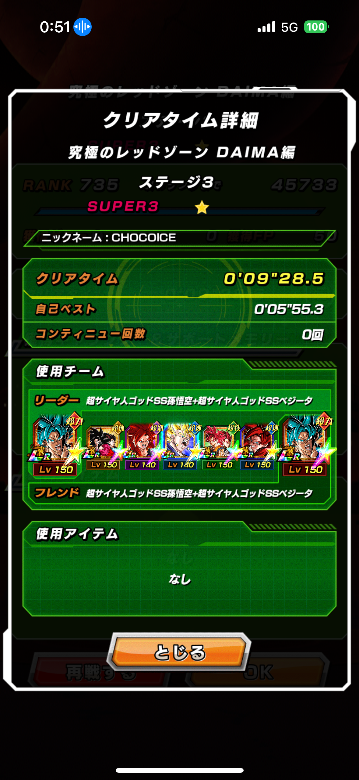 1枠目に絶対必殺技飛んでくるので、ベジータ、ロゼ、ナマズにアイテム使って100%軽減で受ける。(速ゴルフリはアイテムなしでok)