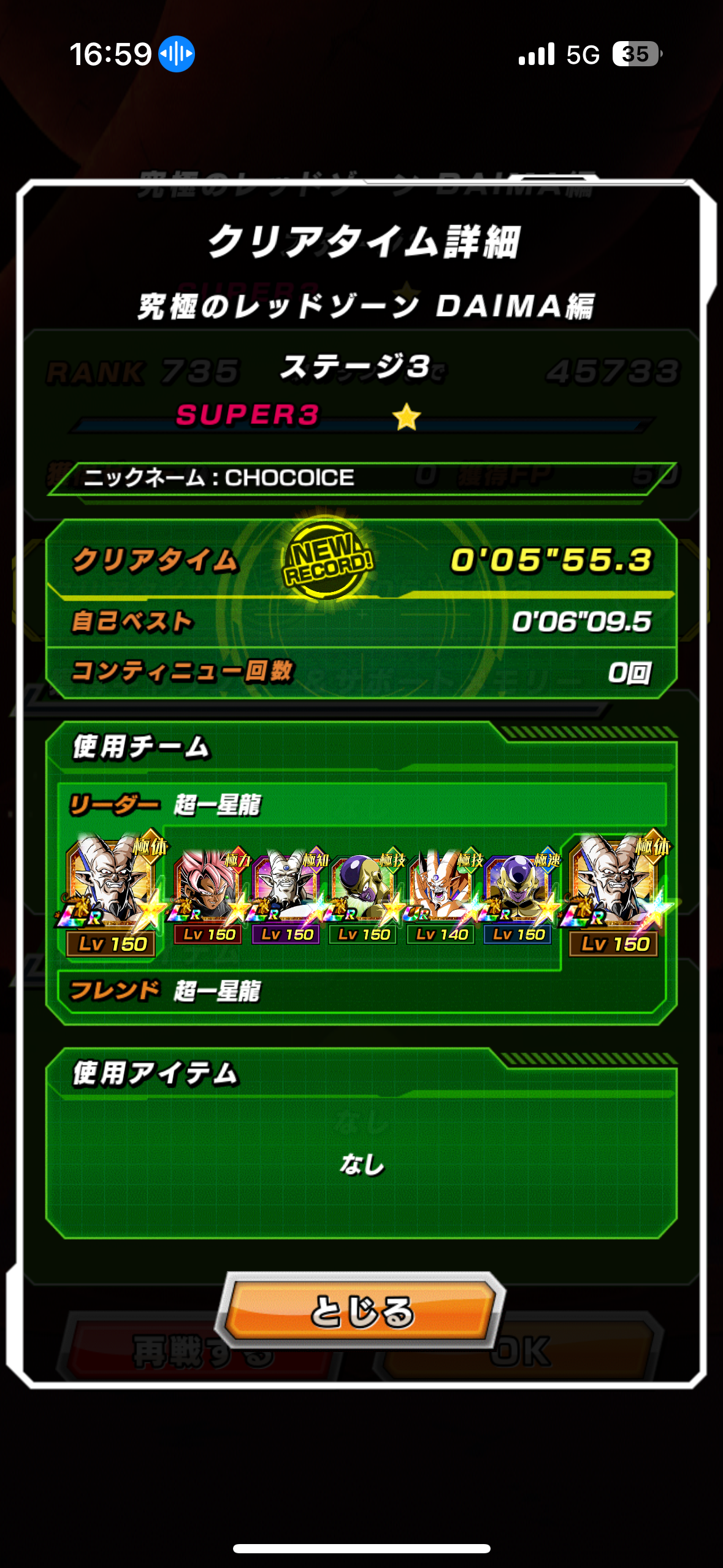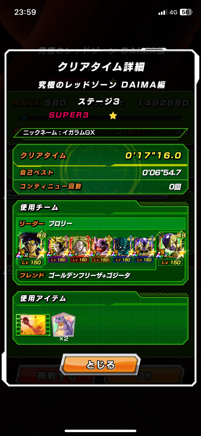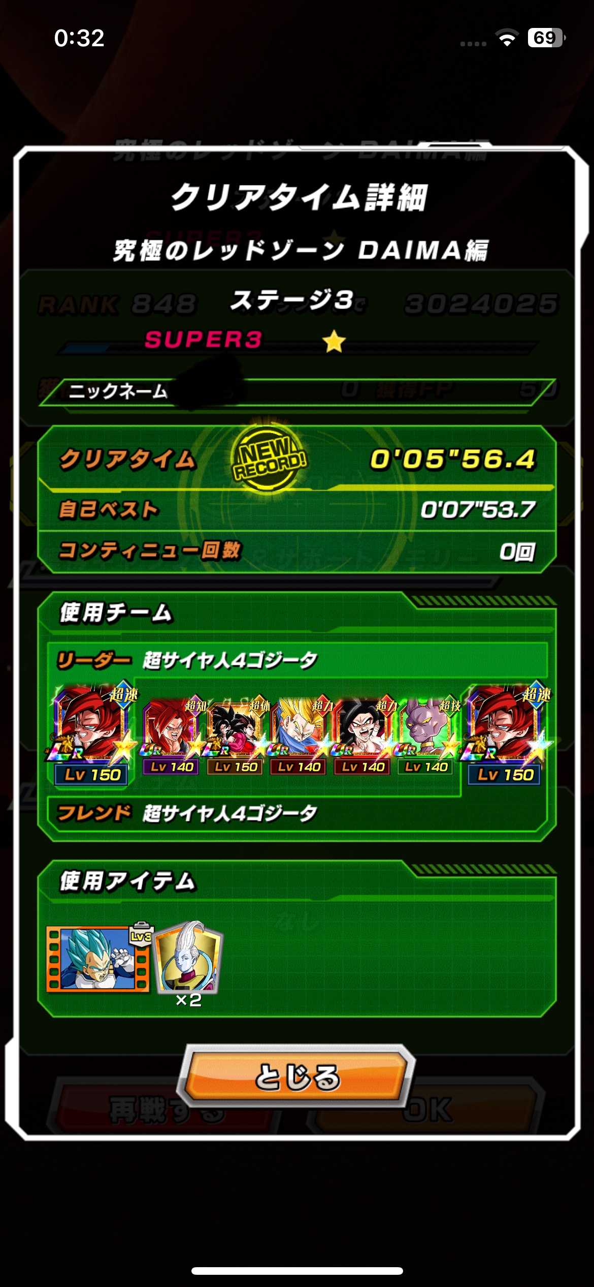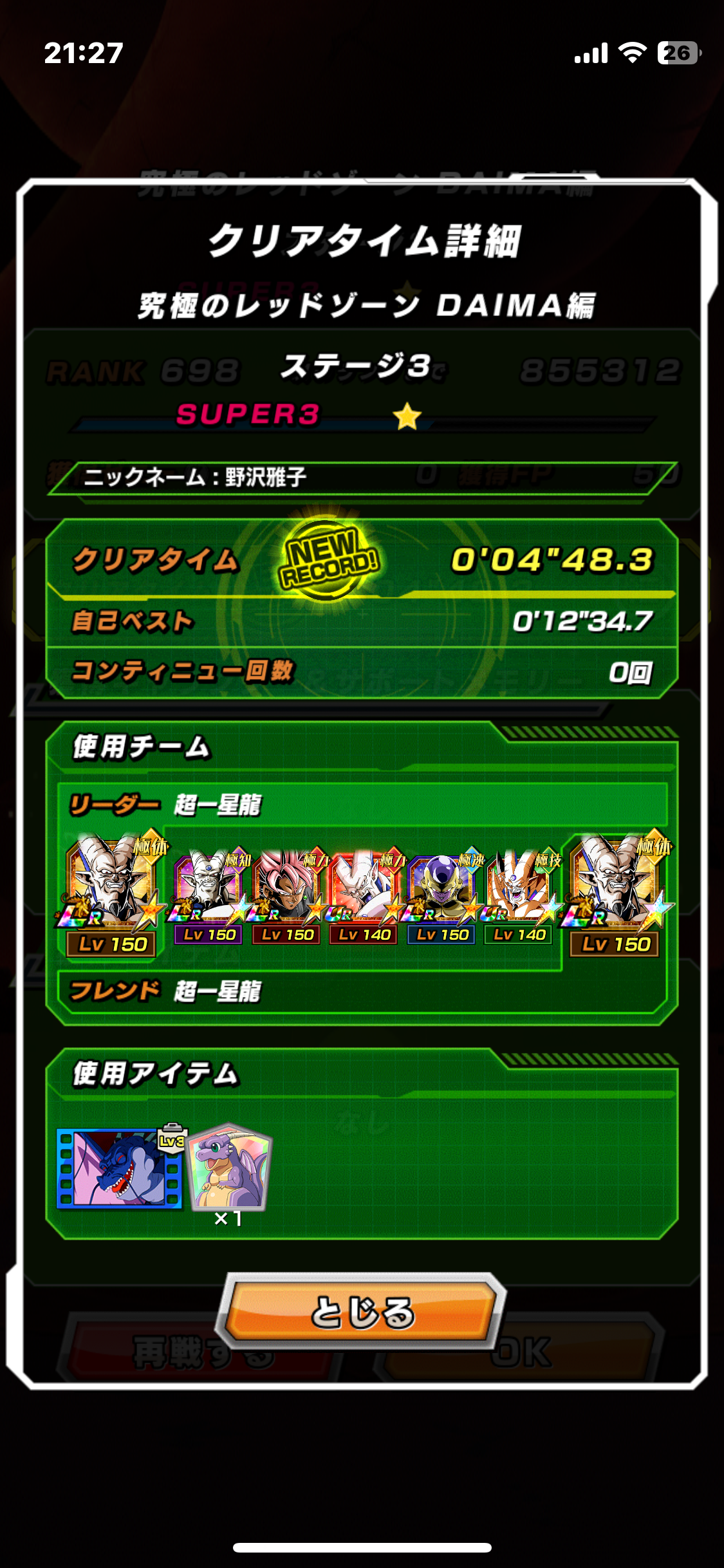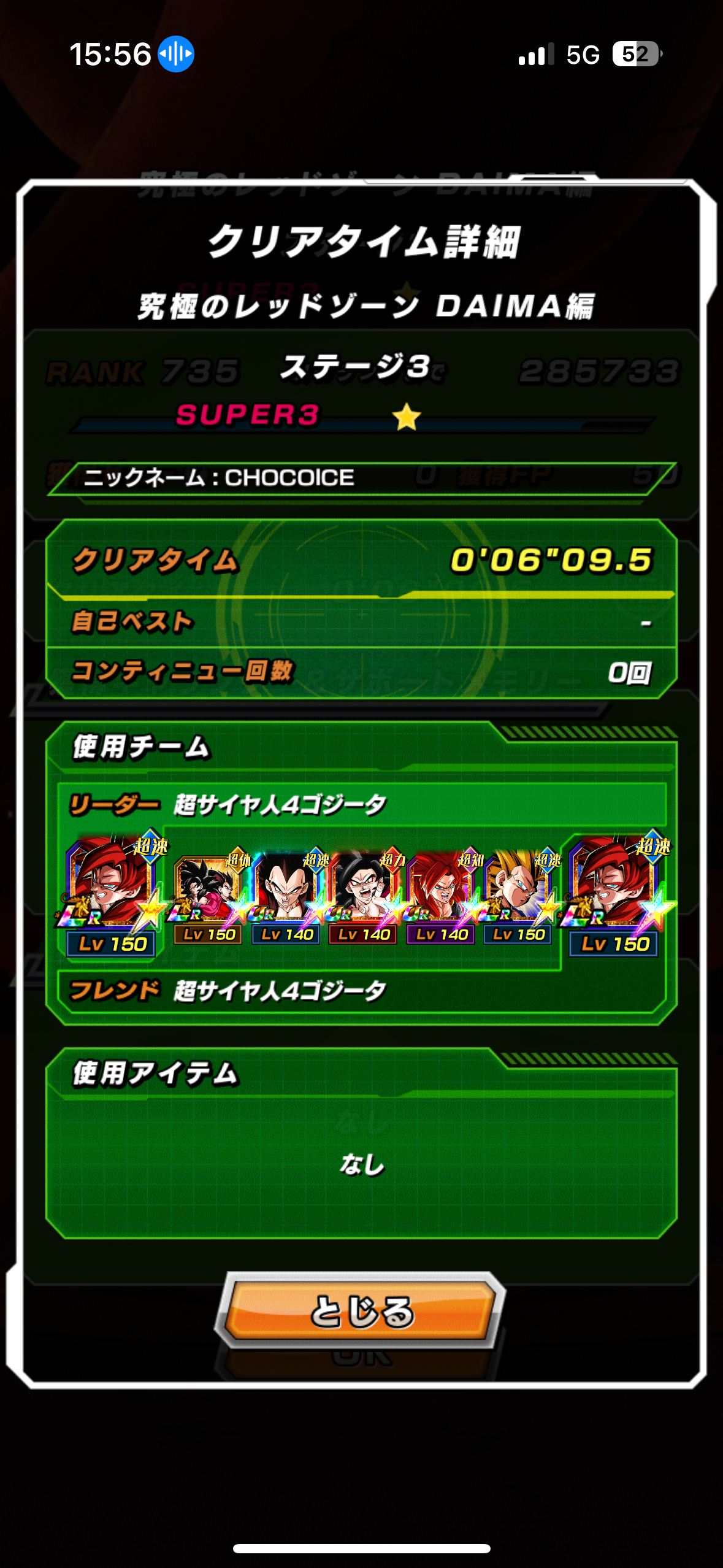1枠目に絶対必殺技飛んでくるので、ベジータ、ロゼ、ナマズにアイテム使って100%軽減で受ける。(速ゴルフリはアイテムなしでok)