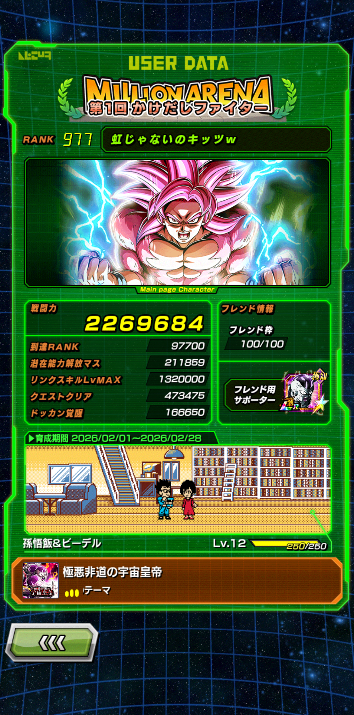極限バトルロード vs超力クリアしたいのでLRベビーを借りたいです。虹のLR悟ベジを設定してます。