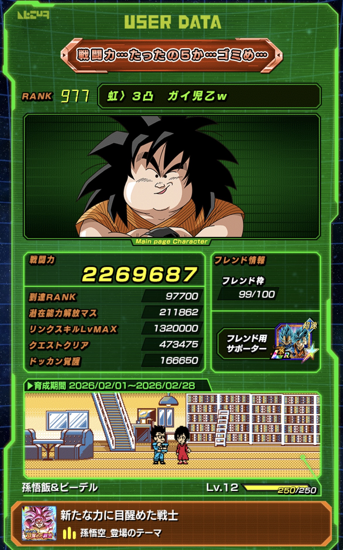 知属性の未来悟飯が使いたいのでフレンド追加お願いします。