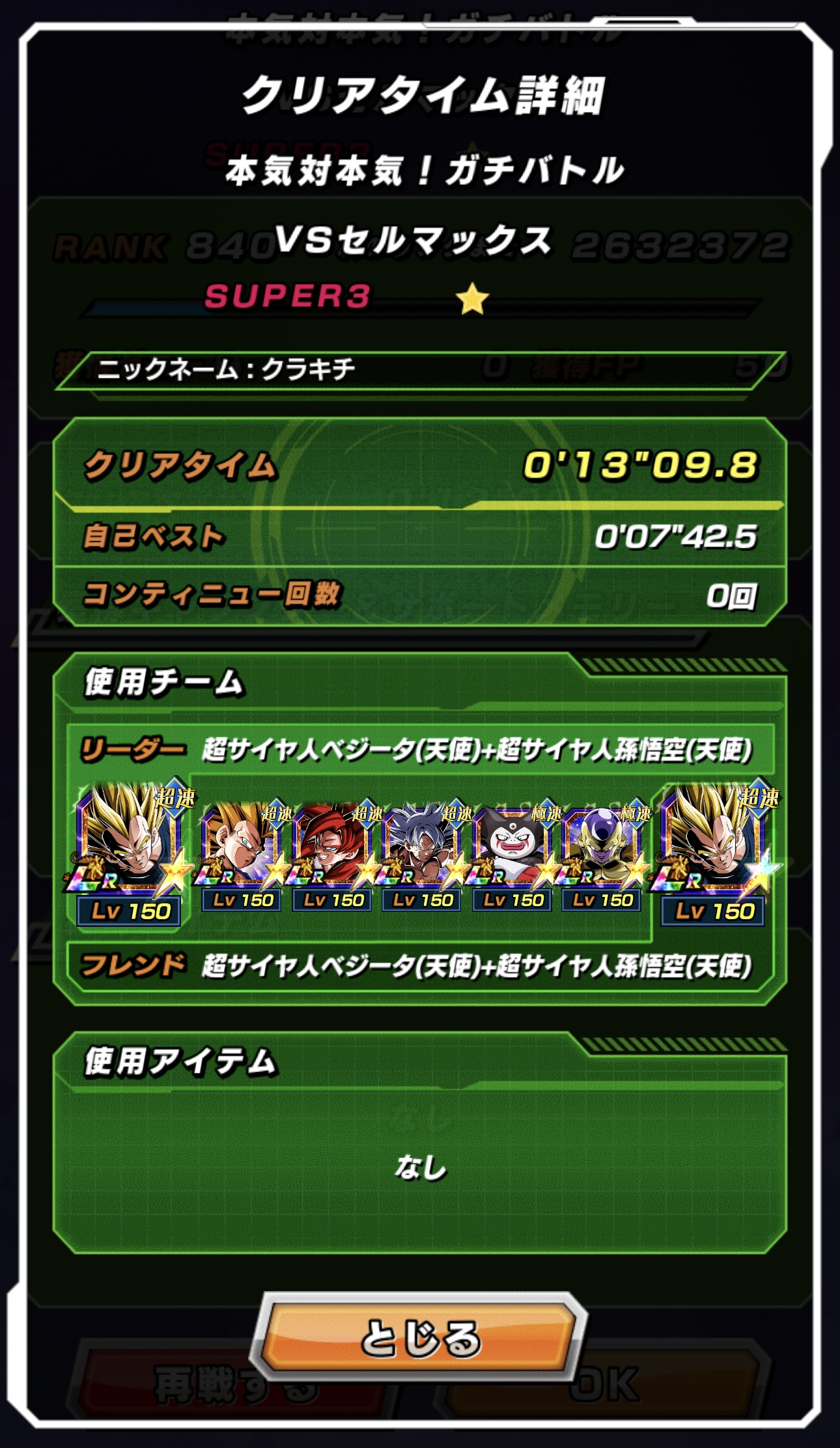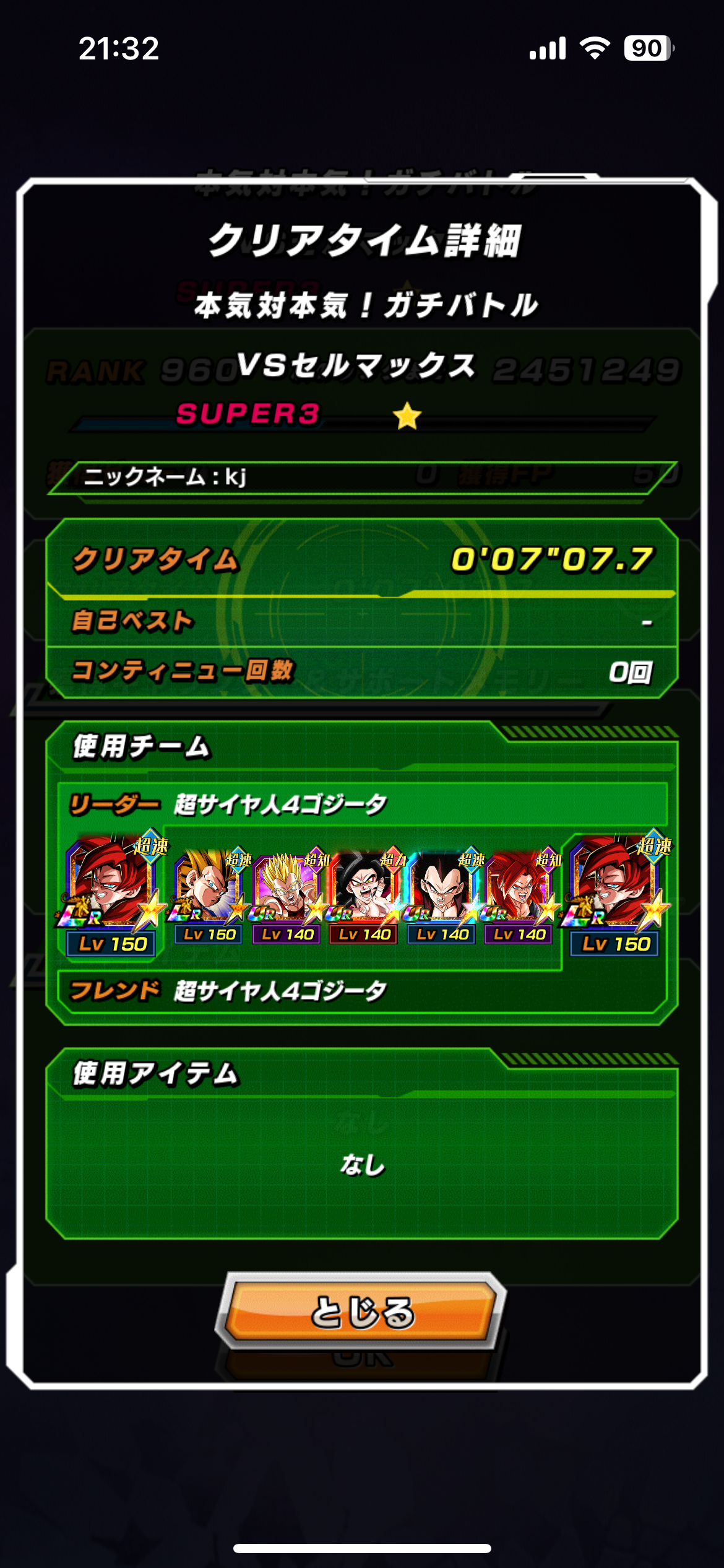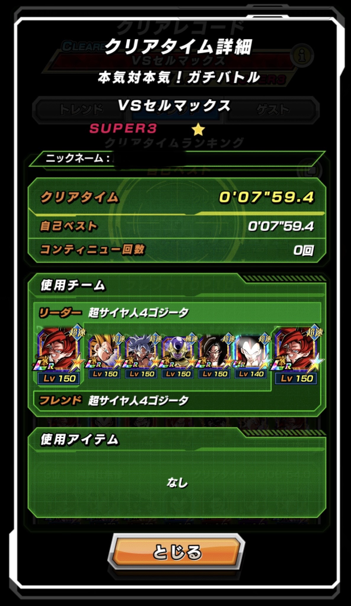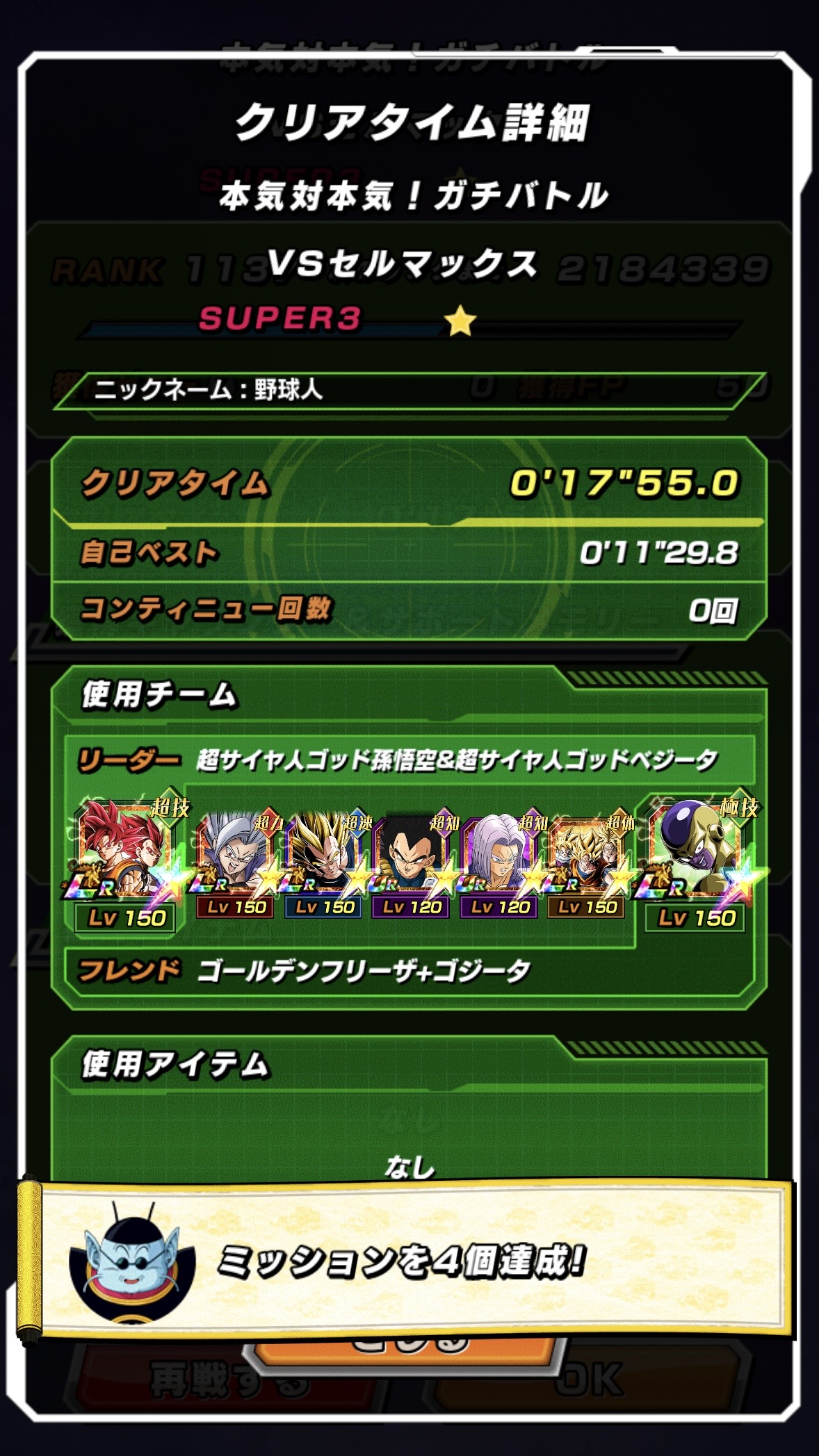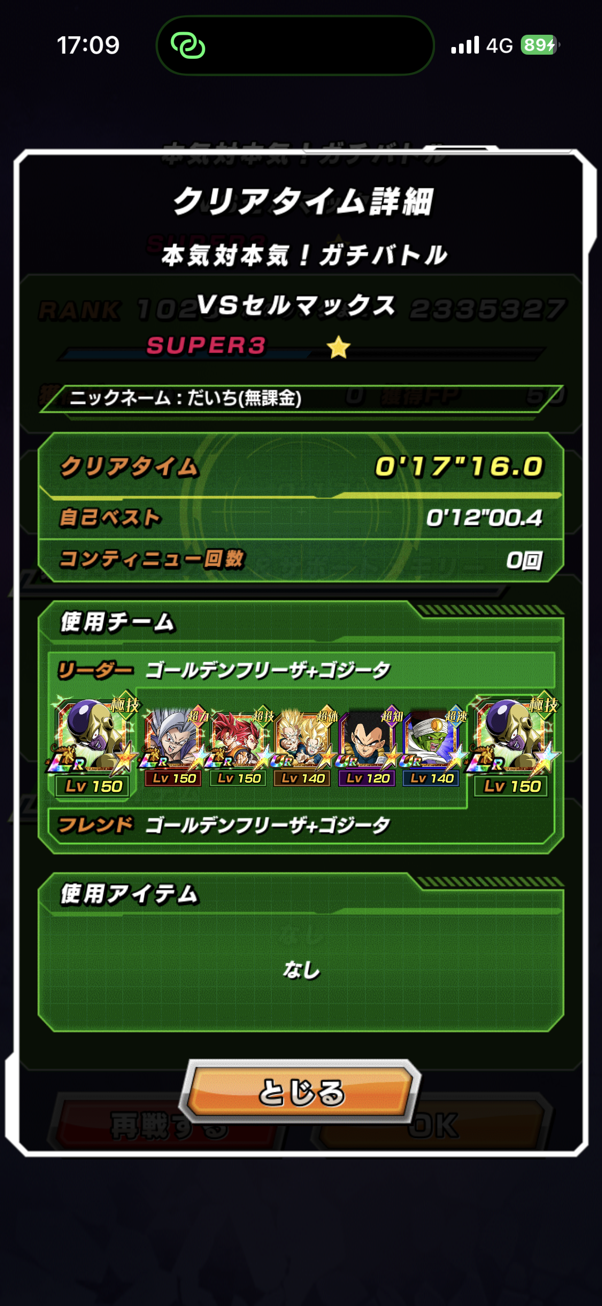速属性縛り・劇場版HERO縛りを上記の編成でクリアしてみました。速はリダフレ同キャラ、劇場版HEROはフレンドにLR【揺り動かされる戦闘本能】ゴールデンフリーザ+ゴジータを選んでいます。
