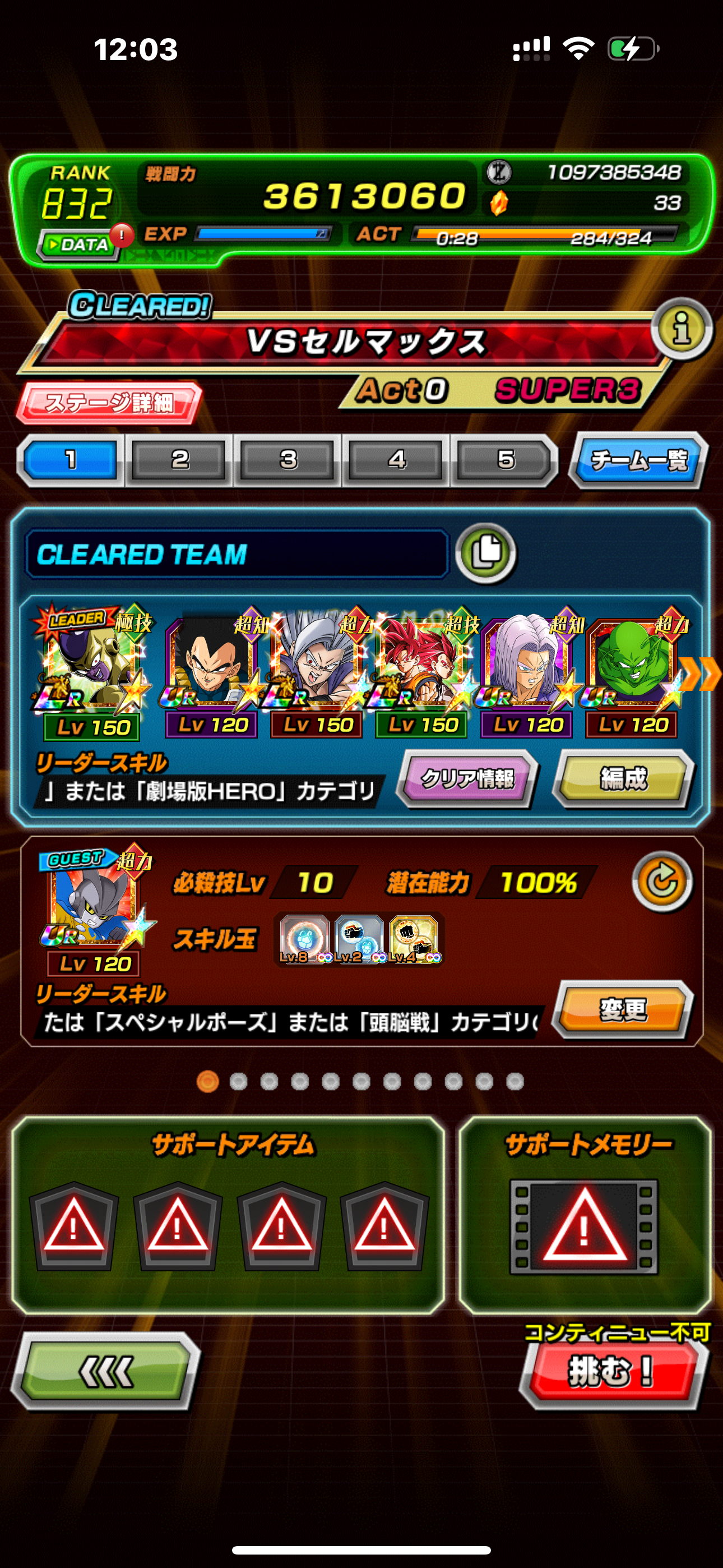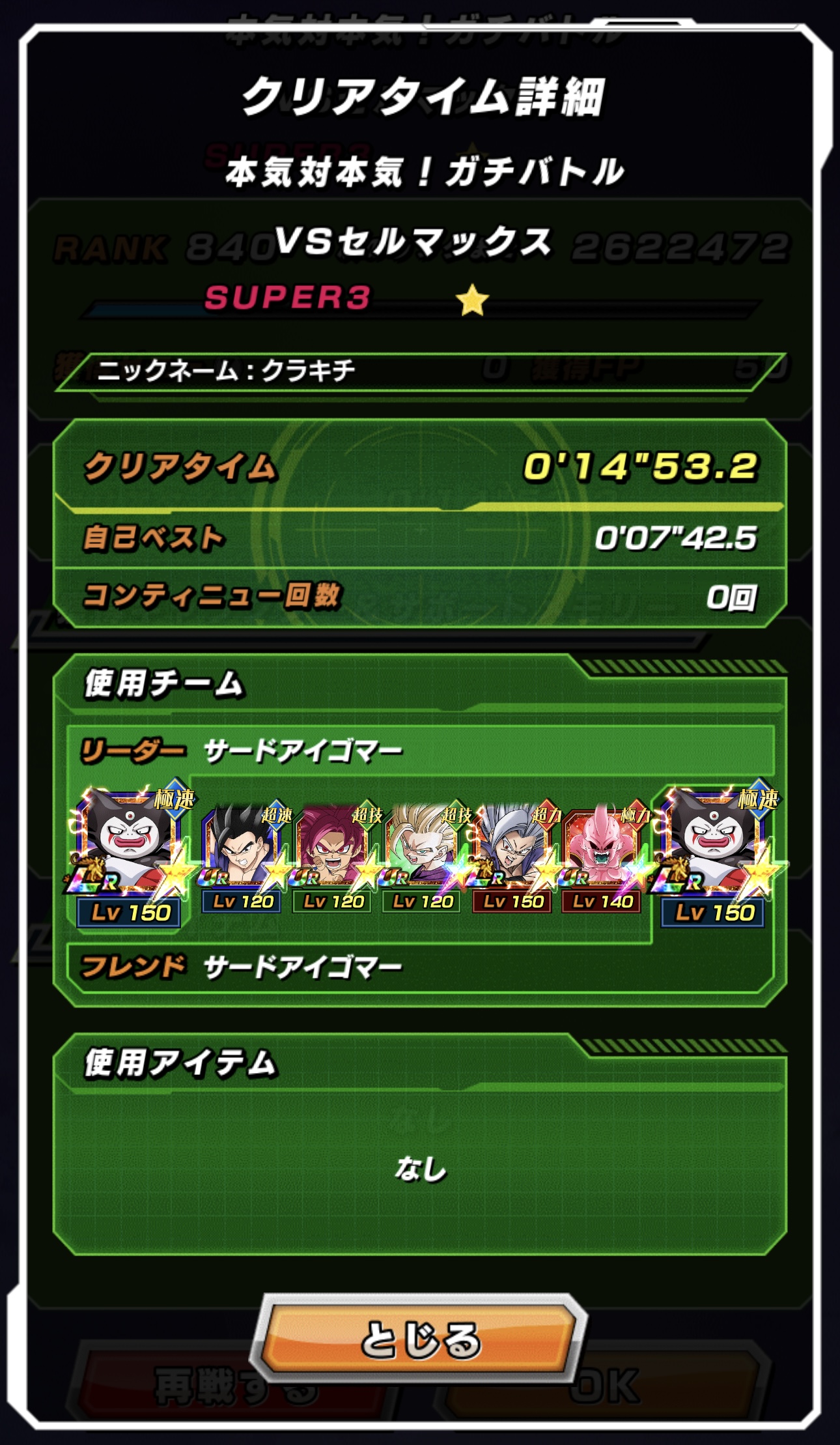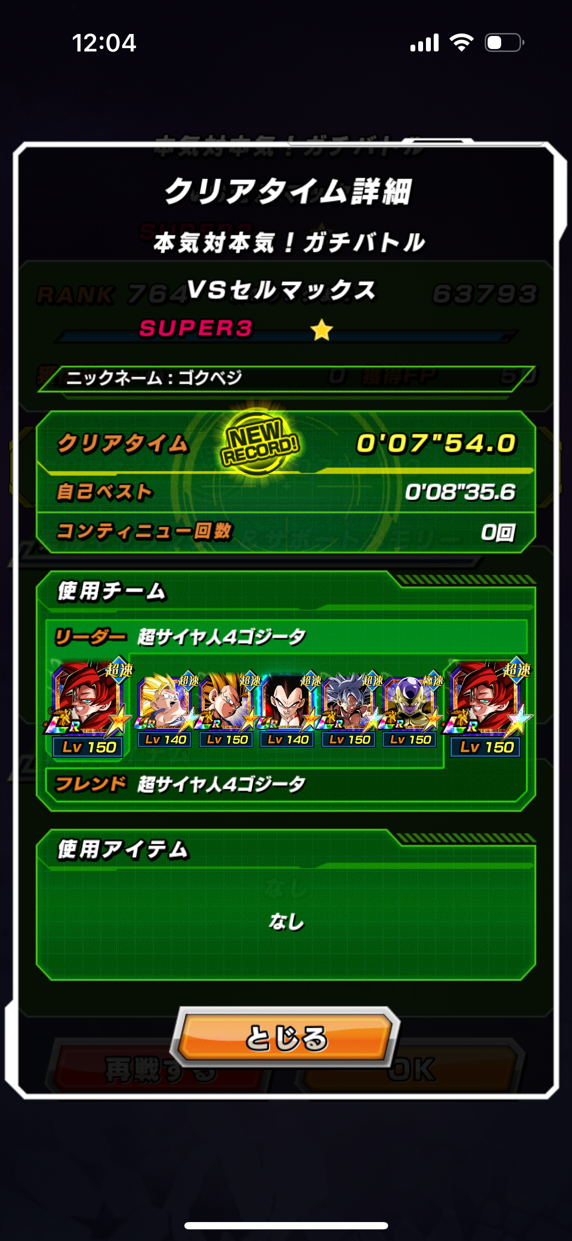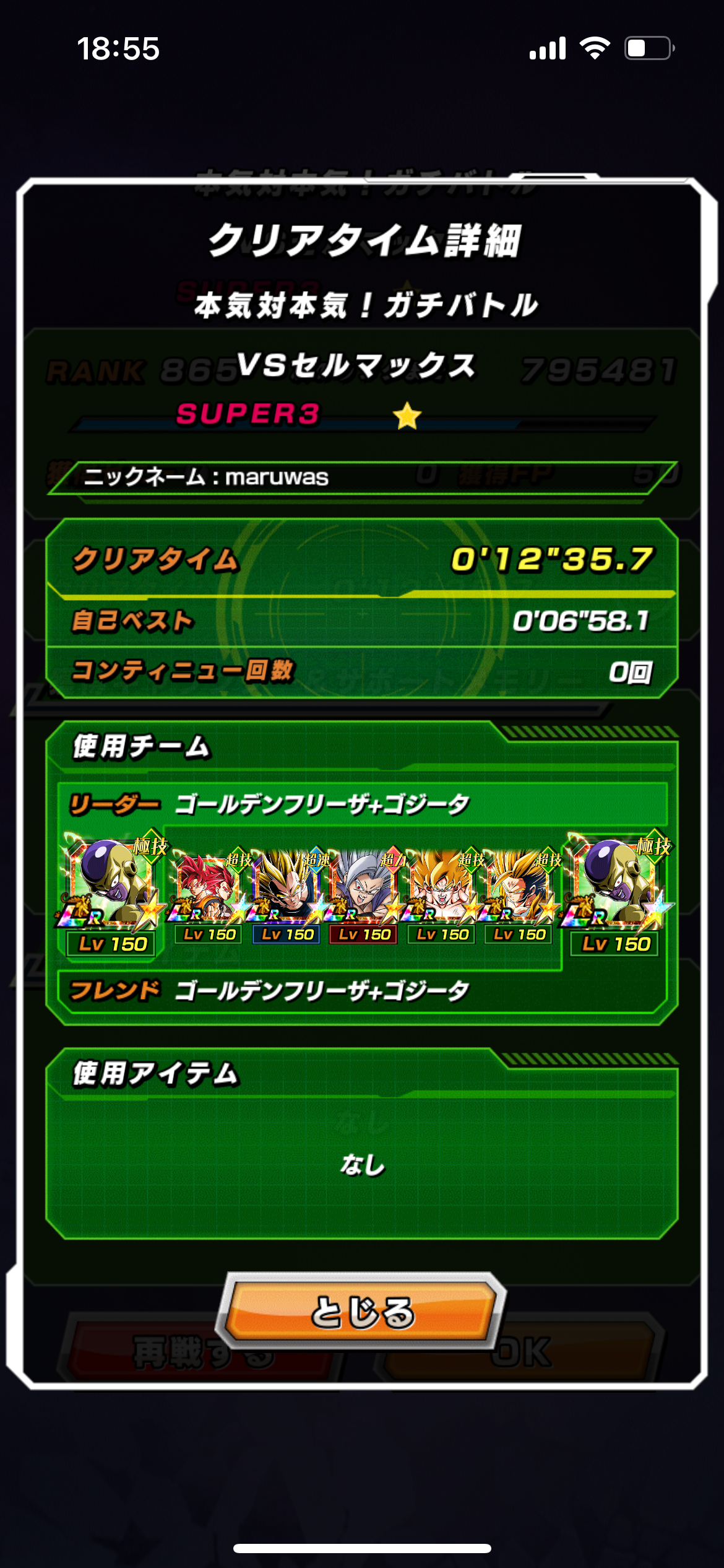 速属性縛り・劇場版HERO縛りを上記の編成でクリアしてみました。速はリダフレ同キャラ、劇場版HEROはフレンドにLR【揺り動かされる戦闘本能】ゴールデンフリーザ+ゴジータを選んでいます。