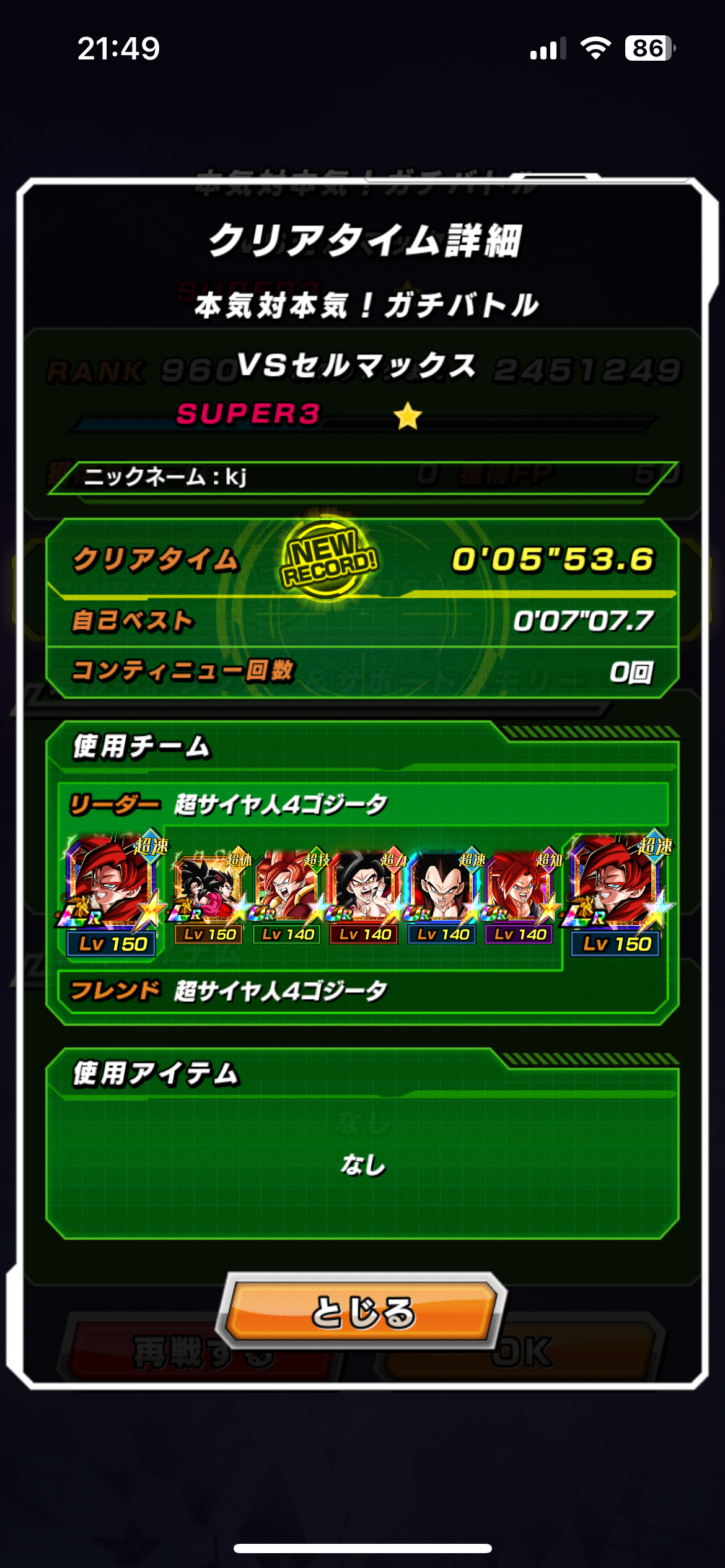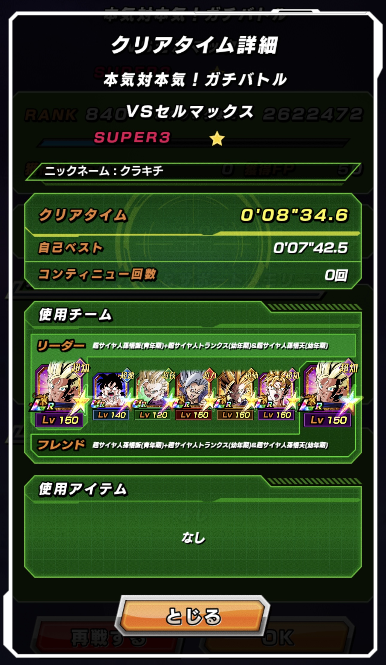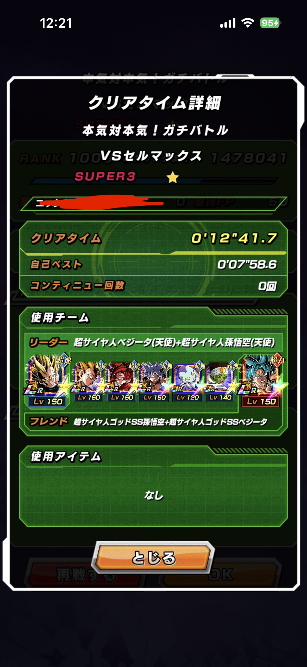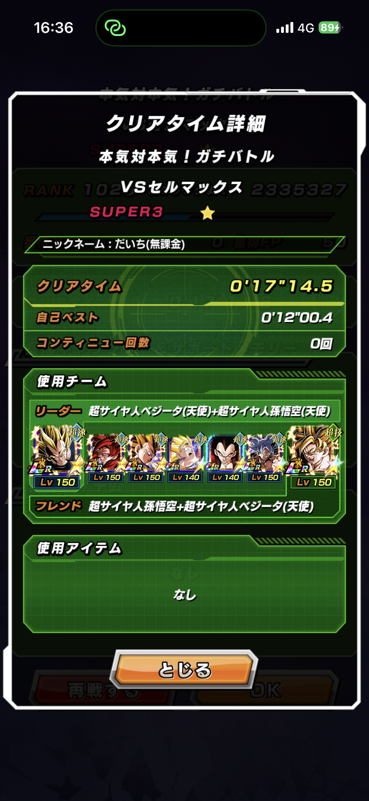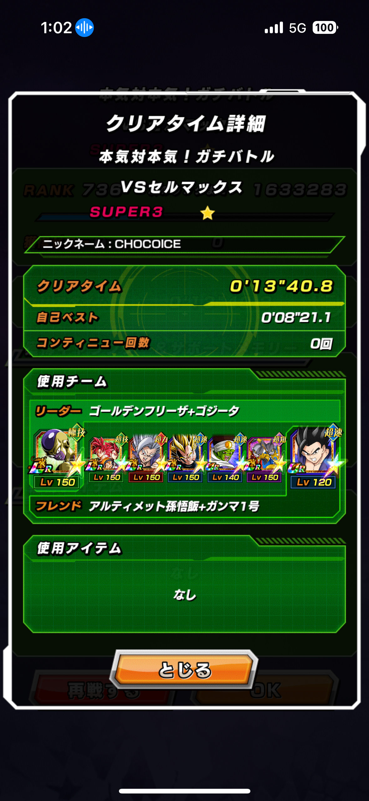 速属性縛り・劇場版HERO縛りを上記の編成でクリアしてみました。速はリダフレ同キャラ、劇場版HEROはフレンドにLR【揺り動かされる戦闘本能】ゴールデンフリーザ+ゴジータを選んでいます。