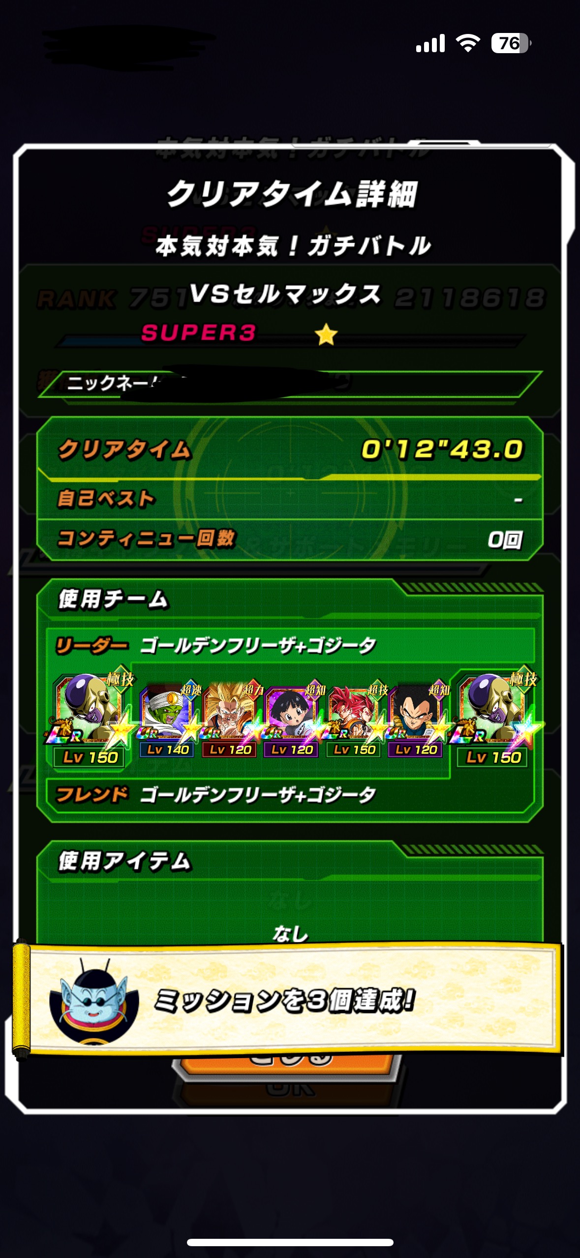 管理人の速パのUR3悟空をゴマー様に置き換えたパーティでクリア