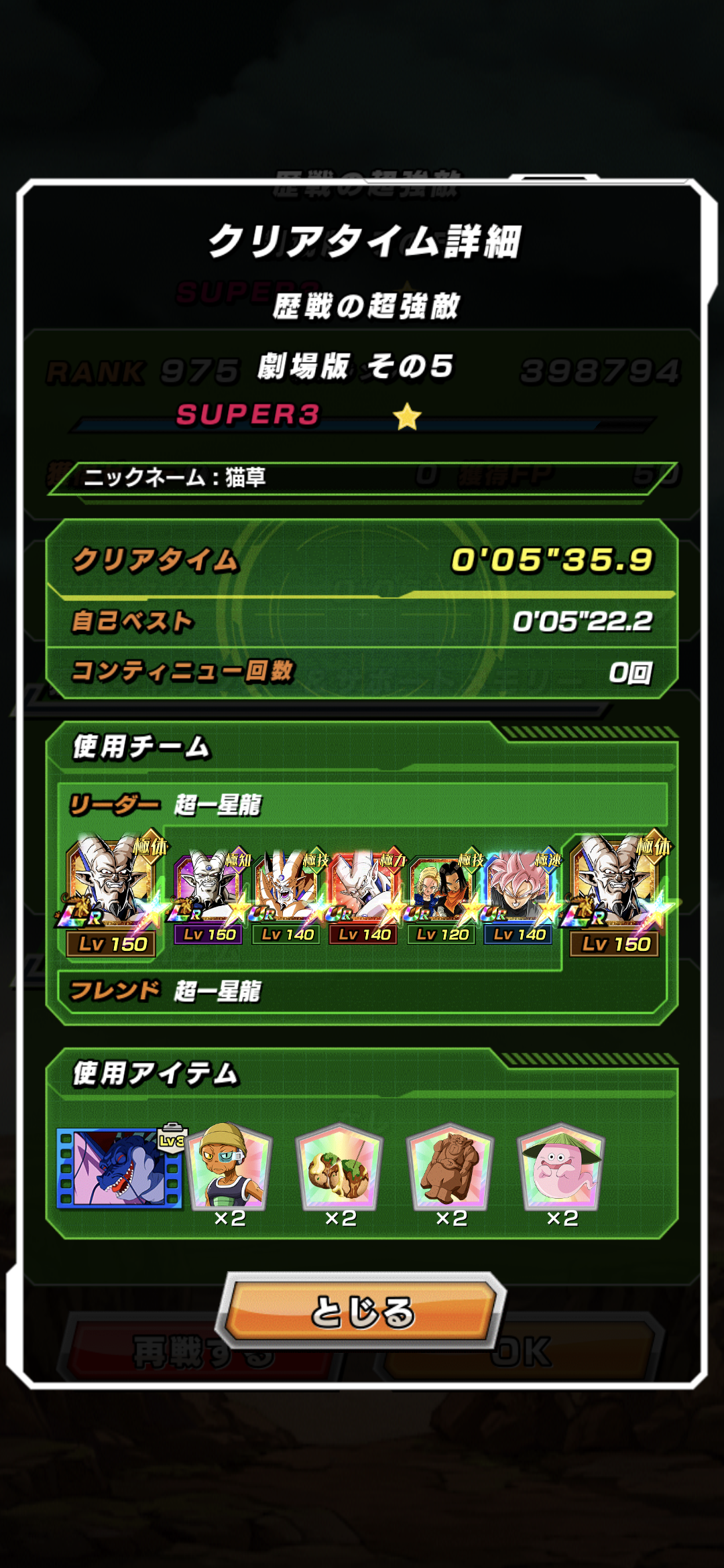 でもスッカン期間やることなくてベジット抜き編成とかで暇な時チャレンジしているおれがいる…