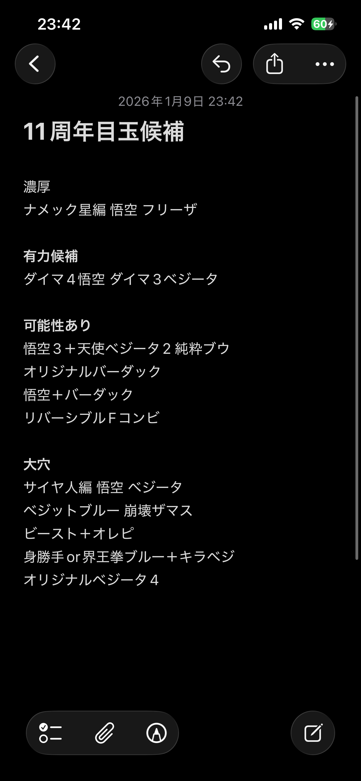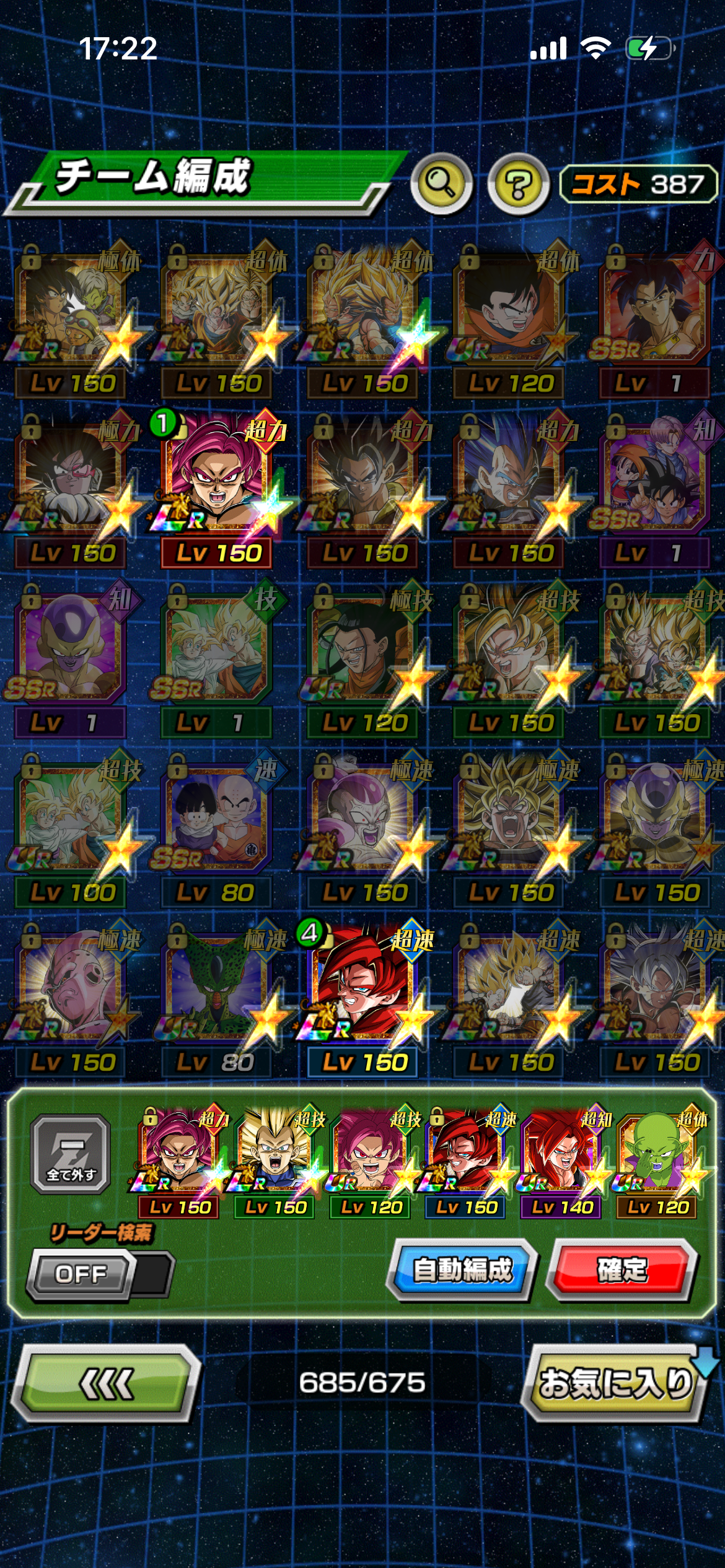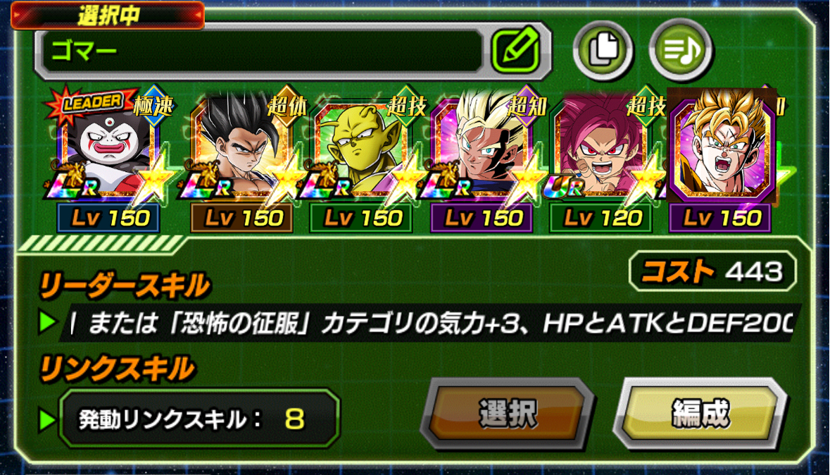 今のガシャにいるキャラだと技ベジット、速4悟空、知進化ベジータ、力親子三大悟飯、サタンとか?あと1枠穴埋め欲しいけど超極限した速のベジットとかかなー