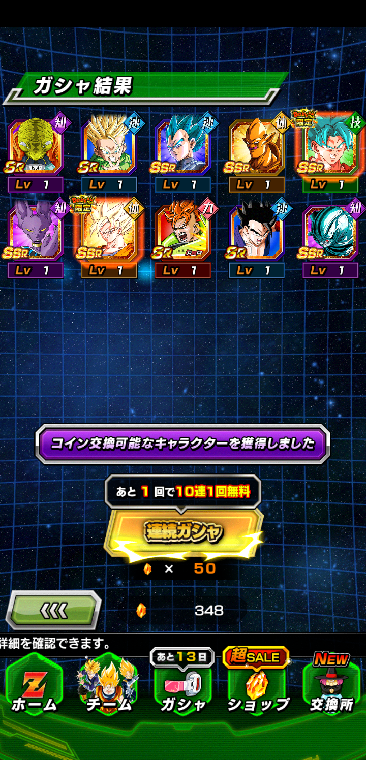 どうしても今すぐ欲しい!ガシャを引きたい!ってことなら、自分だったらベジットフェス引いて10周年フェスコインを10周年祭コインに変換した後普通の祭コインにするかな